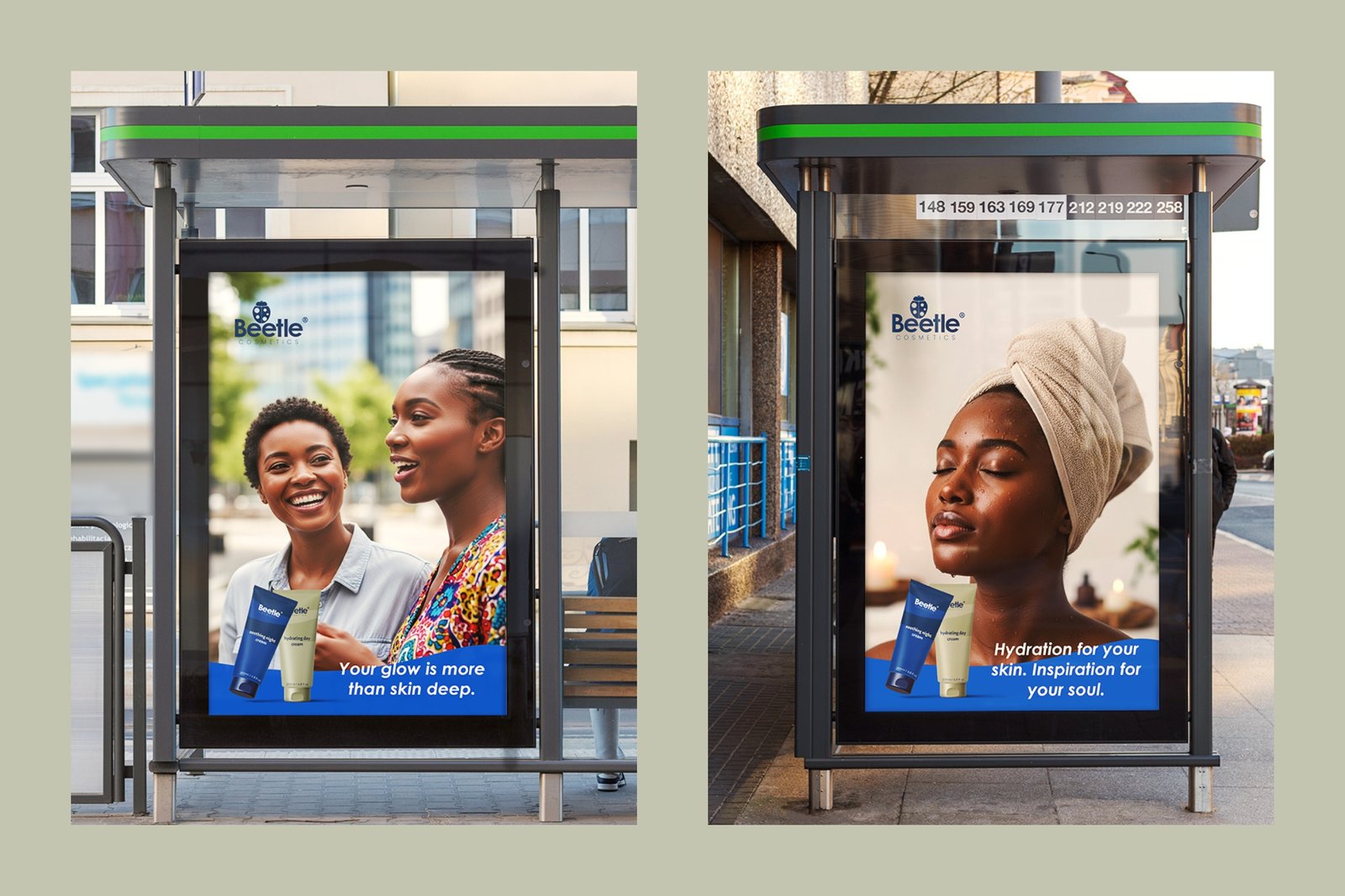 To bring Beetle Cosmetics to life, we imagined how the brand would communicate its vision in the real world. The campaign, built on the idea “True beauty isn’t just how you look. It’s who you are,” set out to shift the conversation in skincare from surface-level appearance to personality and self-expression.